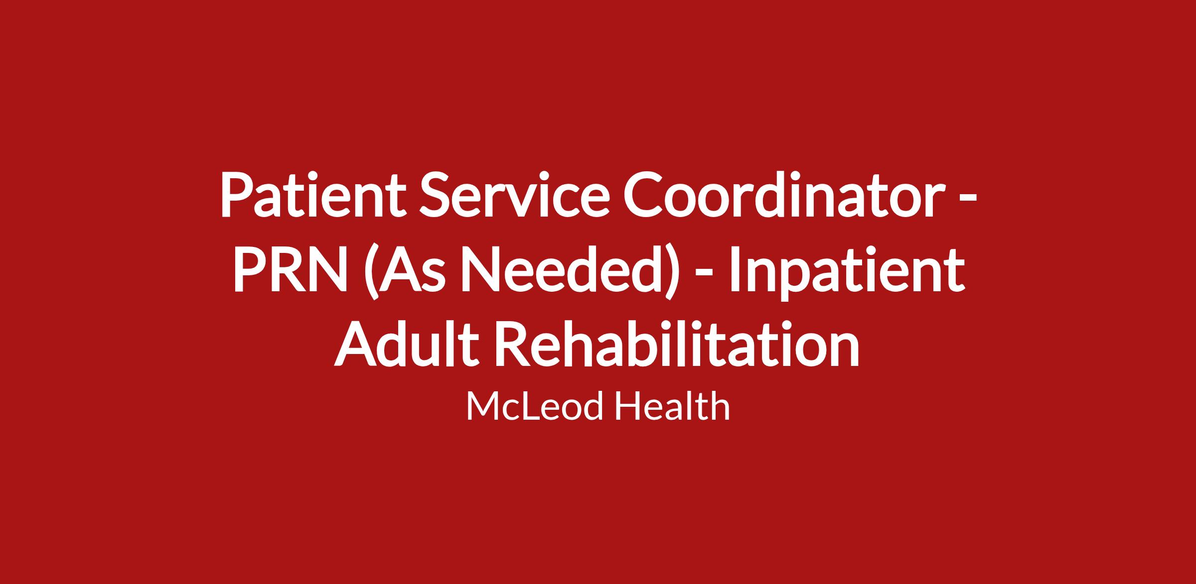DescriptionPatient Service Coordinator - Inpatient Adult Rehabilitation