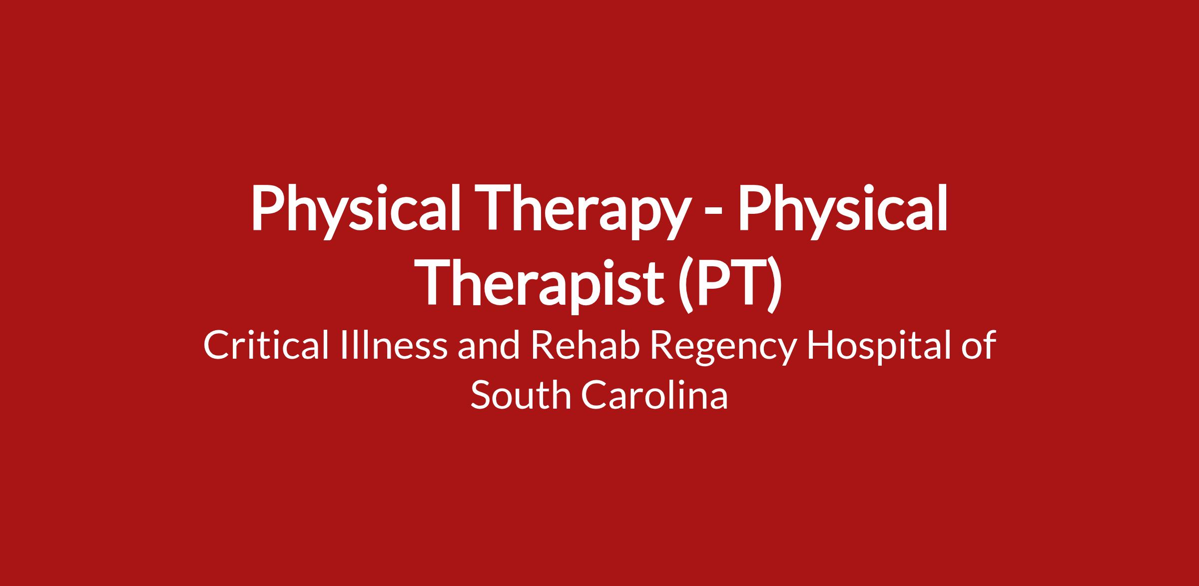 Genie Healthcare is looking for a Physical Therapy to work in Physical Therapist (PT) for a 13 weeks travel assignment located in , SC for the Shift (5x8 Days - Please verify shift details with recruiter, 07:00:00-15:00:00, 8.00-5).