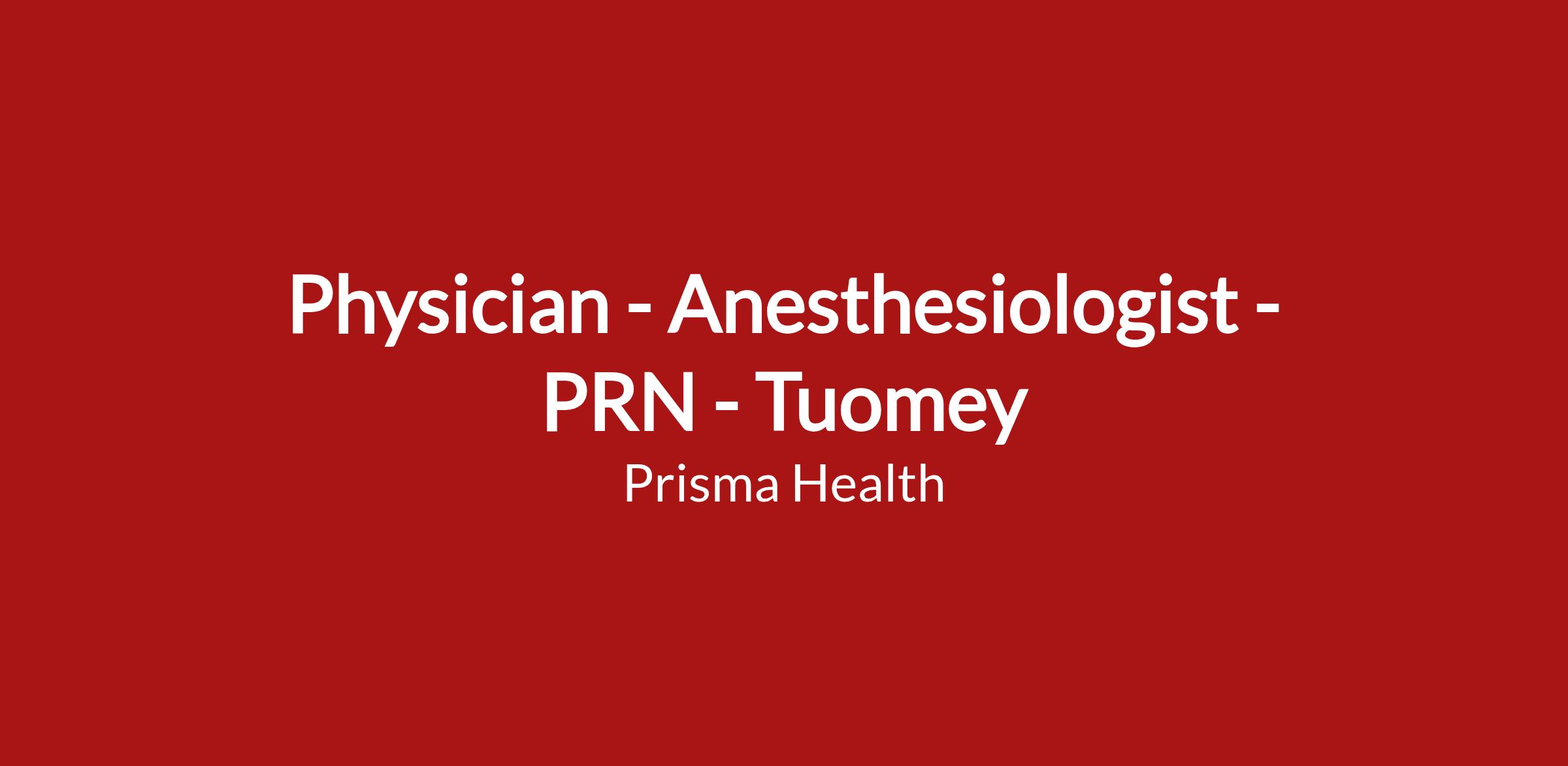 24871000 Anesthesia-Sumter-Practice OperationsShare your talent with us! Our vision is simple: to transform healthcare for the benefits of the communities we serve. The transformation of healthcare requires talented individuals in every role here at Prisma Health.