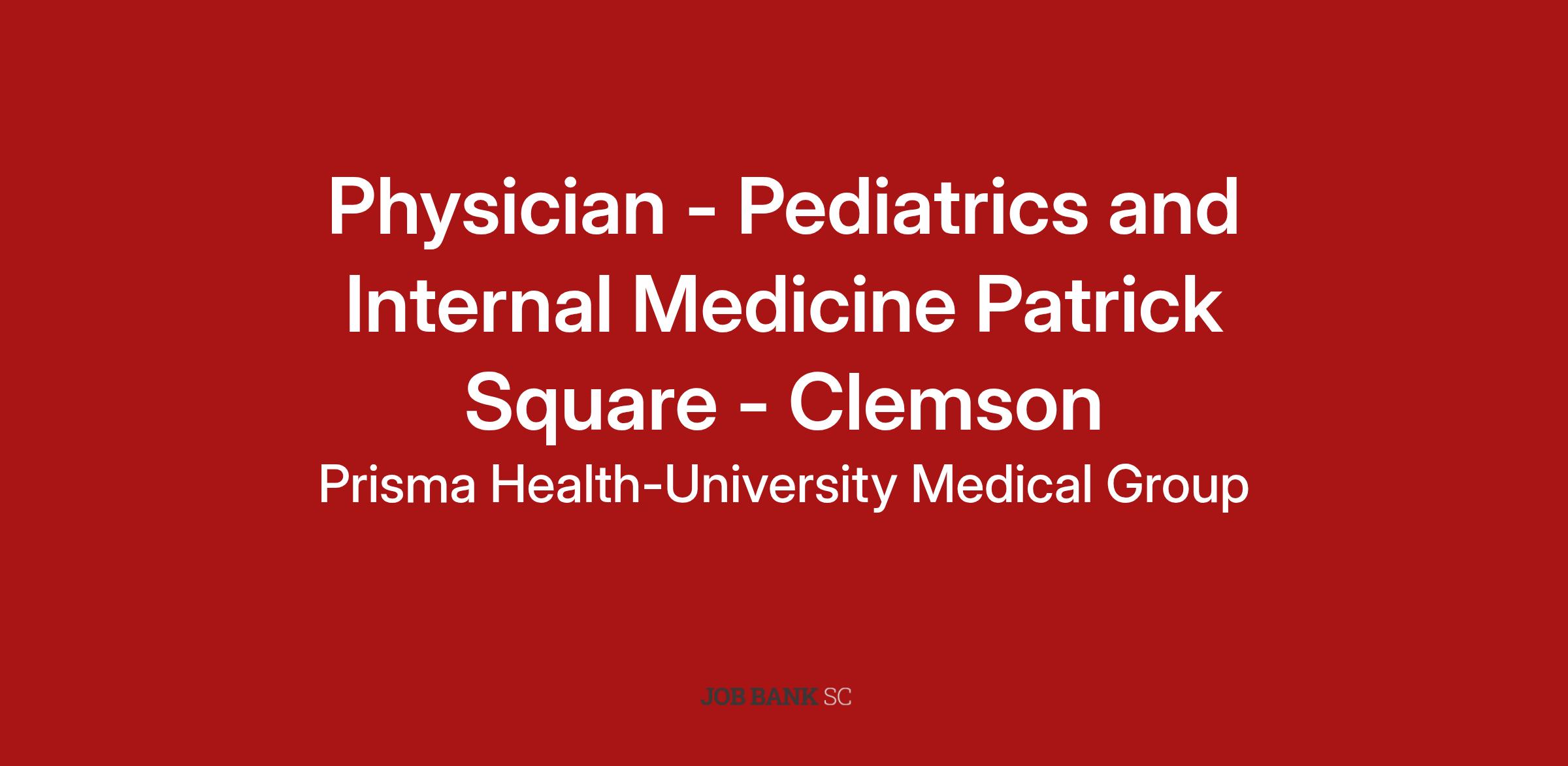 23951000 Pediatrics & Internal Medicine - Patrick Square - Practice OperationsShare your talent with us! Our vision is simple: to transform healthcare for the benefits of the communities we serve. The transformation of healthcare requires talented individuals in every role here at Prisma Health.