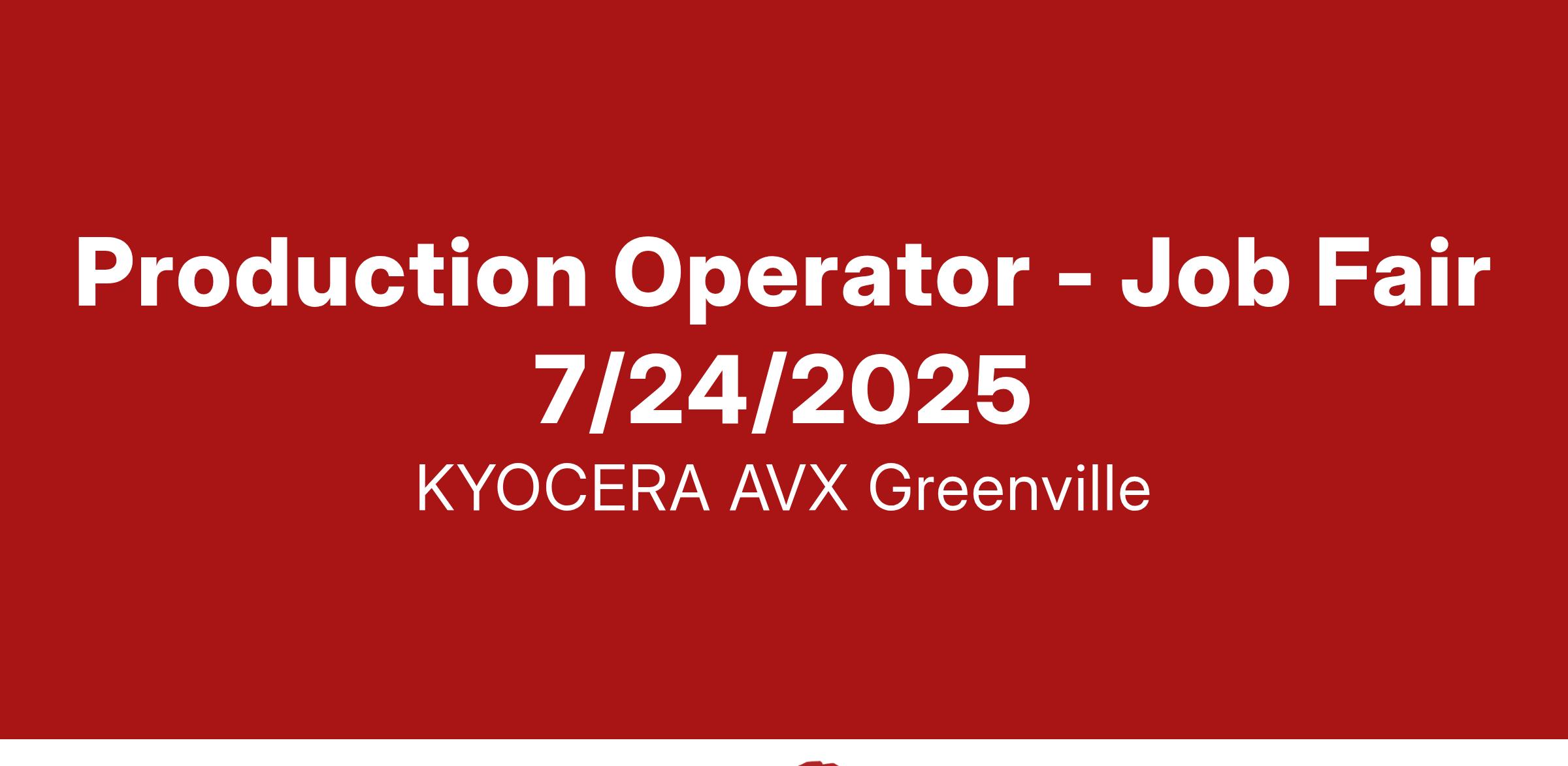 Kyocera-AVX will be hosting an onsite Job Fair at our manufacturing facility - 1 Avx Blvd., Fountain Inn, SC 29644 onΒ Thursday, July 24, 2025.Β Β