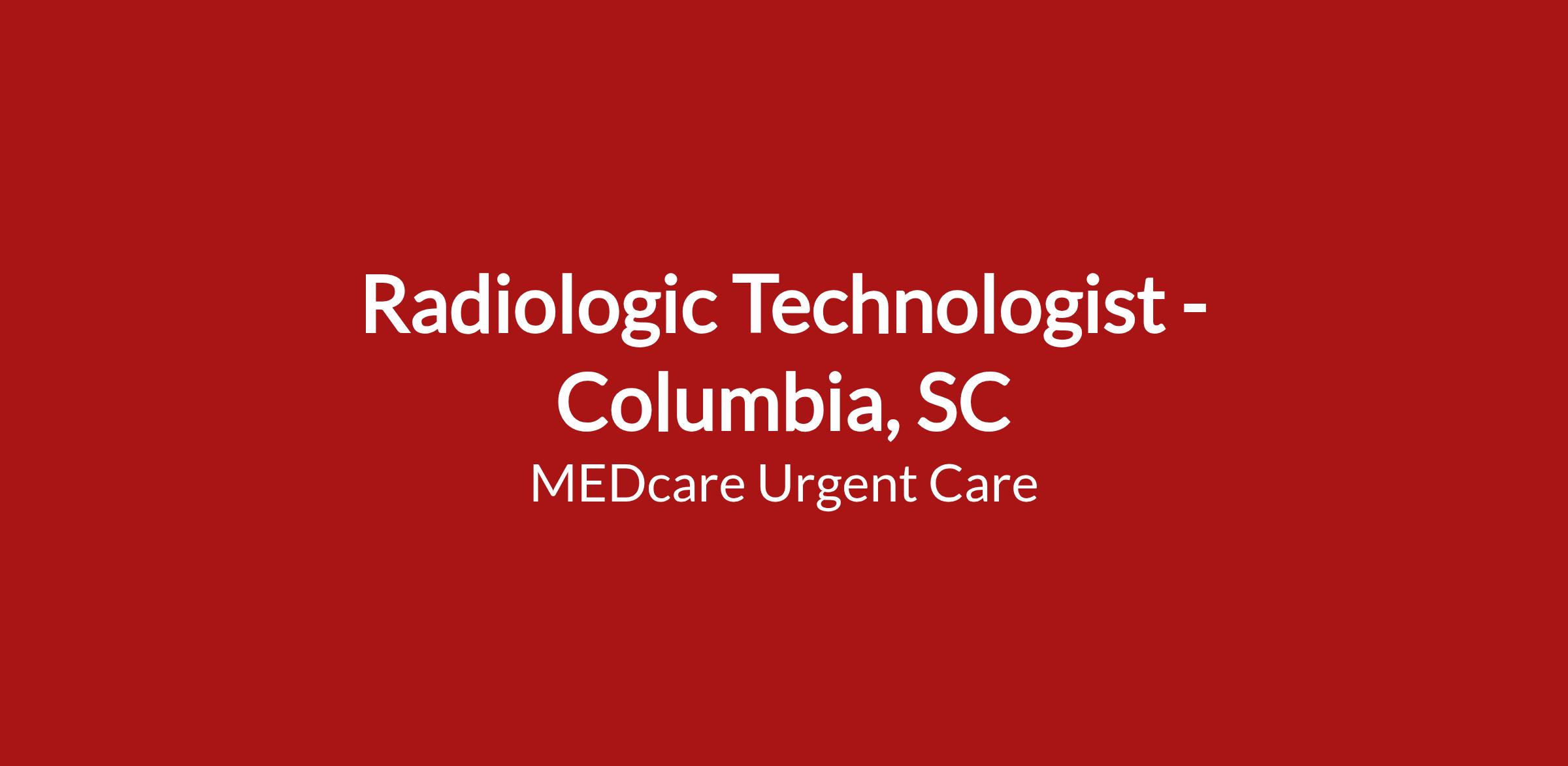 MEDcare Urgent Care has been proudly providing top-ranked patient care to South Carolina communities since 2007. Radiologic Technologists are critical to the success of our clinical teams and crucial to providing fast, friendly, and affordable healthcare at our 12 MEDcare Urgent Care centers. With onsite digital X-ray, EKG, common laboratory assays, our teams are able to offer a high level of care to our patients.