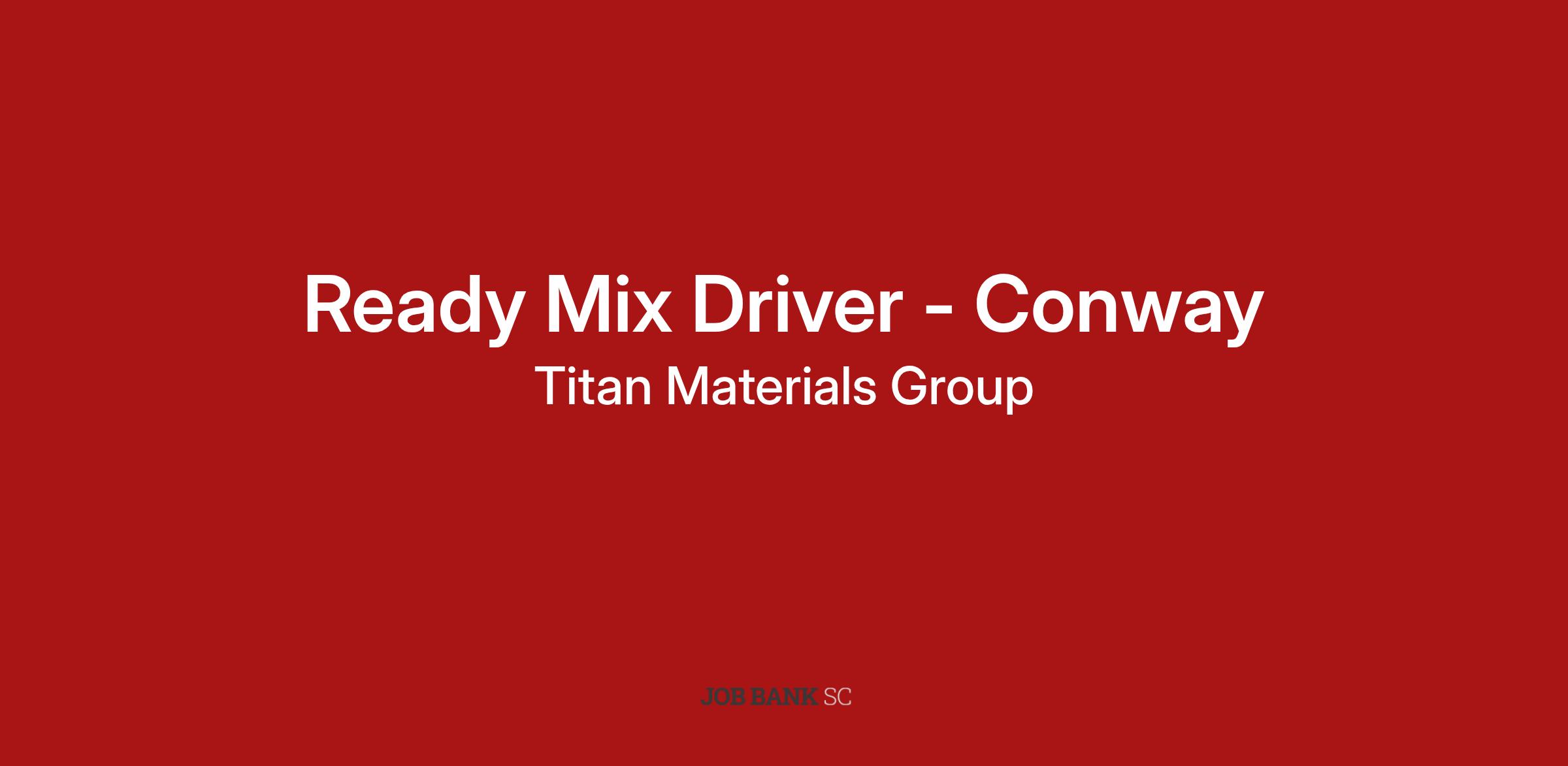 S&W Ready Mix isΒ looking for high energy women and men to fill our opening for aΒ Ready Mix DriverΒ at ourΒ Conway plant facility.Β S&W Ready Mix/Titan America, LLC offers excellent wages and benefits, including health, dental, vision, 401k savings plan, paid vacation, and holidays.Β Drivers should be flexible, patient, trustworthy, customer service driven, and adaptable to changing environments and schedule.