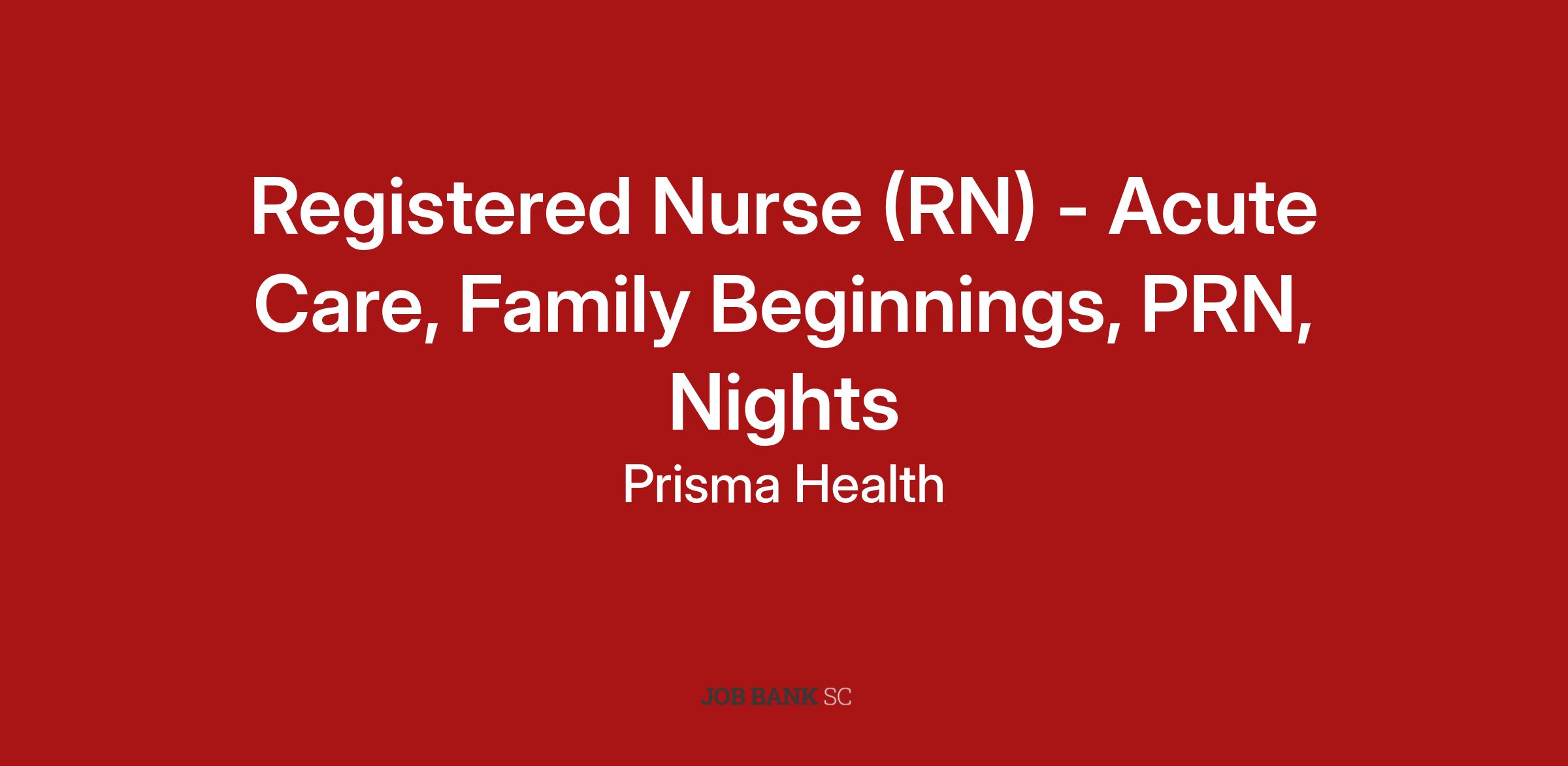 Provides clinical direction for all aspects of patient care in an acute inpatient setting, fostering patient/family centered care. Demonstrates clinical competency utilizing evidence-based practices/research in all areas of the nursing process: assessment, planning, implementation, evaluation and outcomes. Incorporates knowledge of safety protocols, cost containment and quality improvement throughout the nursing process. Identifies patient, unit and organizational priorities and incorporates into the nursing process. Adheres to all compliance and policy/procedures of the organization including, but not limited to licensure renewal, assigned training, employee health screenings, time and attendance policy, dress code policy, patient confidentiality, infection control, medication administration. Demonstrates knowledge of regulatory agency requirements (TJC, SC DPH, CMS). Provides care within the scope of the South Carolina Nurse Practice Act. The acute inpatient setting may require staff to be scheduled for a weekend, holiday, and on-call work.Essential Functions