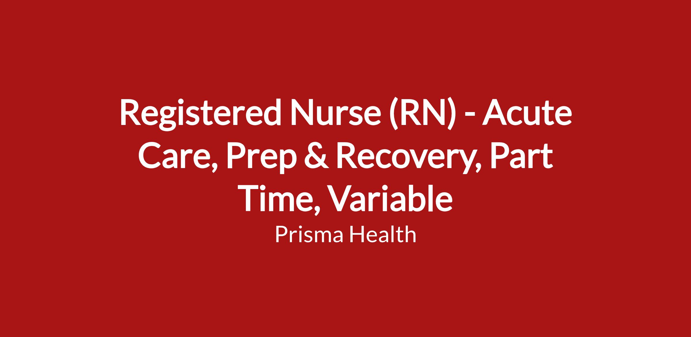 10646161 Prep & RecoveryShare your talent with us! Our vision is simple: to transform healthcare for the benefits of the communities we serve. The transformation of healthcare requires talented individuals in every role here at Prisma Health.