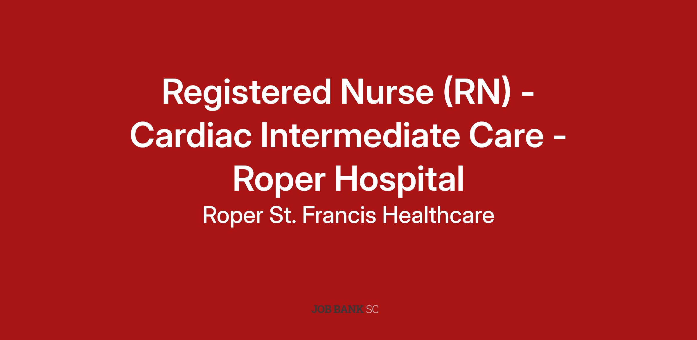 NSG Cardiac Intermediate Care (4HVT - West) - Roper HospitalIt is our policy to abide by all Federal and State laws, as well as, the requirements of 41 CFR 60-1.4(a), 60-300.5(a) and 60-741.5(a). Accordingly, all applicants will receive consideration for employment without regard to race, color, national origin, religion, sex, sexual orientation, gender identity, age, genetic information, or protected veteran status, and will not be discriminated against on the basis of disability. If you are an individual with a disability and would like to request a reasonable accommodation as part of the employment selection process, please contact The Talent Acquisition Team at recruitment@RSFH.com.