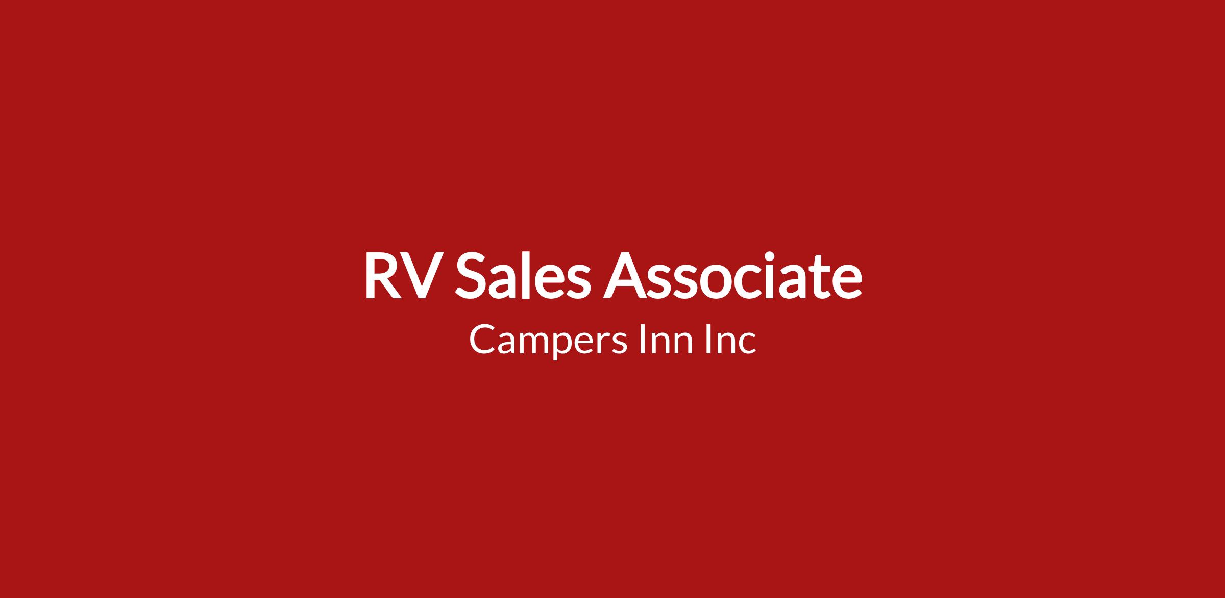 Are you looking for an opportunity where you can help people by creating their dream βAwayβ? As a company in the midst of rapid growth we are constantly innovating and creating new opportunities. Campers Inn RV is looking for RV Sales Associate. This role is responsible for following our trusted door to deal sales process to sell new and used RVs with the highest quality of customer service.