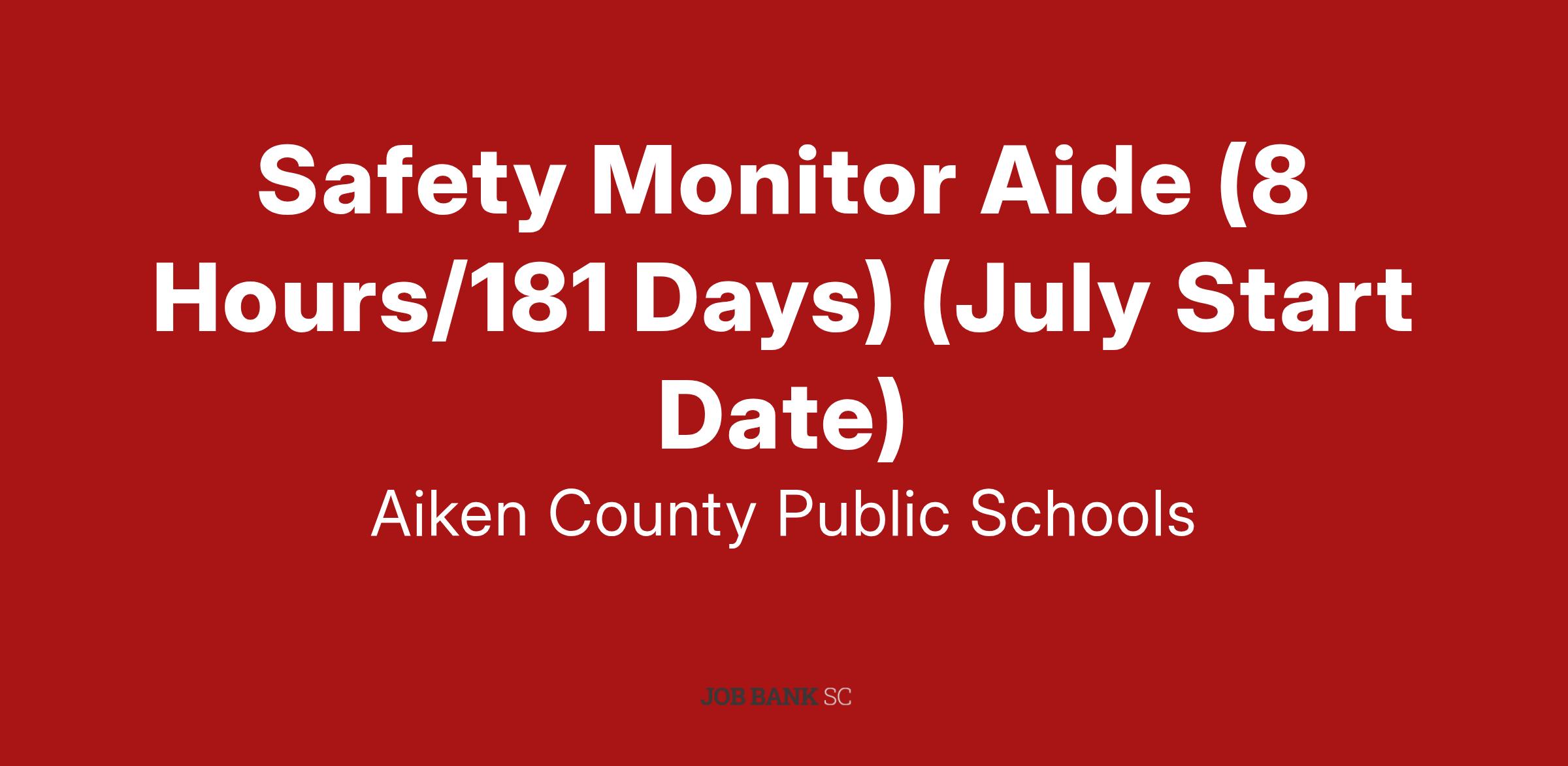 Are you passionate about helping students feel safe and supported? Do you want to play a key role in maintaining a positive and secure school environment where students can thrive? If so, Aiken County Public Schools is looking for a dedicated School Safety Monitor Aide to join our team!Β