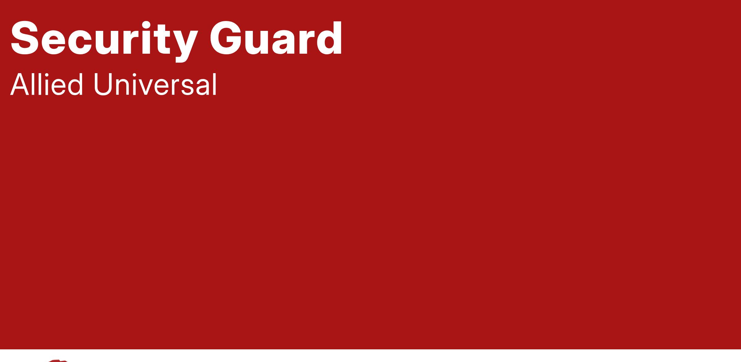 Allied Universalยฎ, North Americaโ€™s leading security and facility services company, offers rewarding careers that provide you a sense of purpose. While working in a dynamic, welcoming, and collaborative workplace, you will be part of a team that contributes to a culture that positively impacts the communities and customers we serve. We offer comprehensive benefits for most full-time positions, including medical, dental, and vision coverage, life insurance, a retirement plan, employee assistance programs, company discounts, perks, and more.