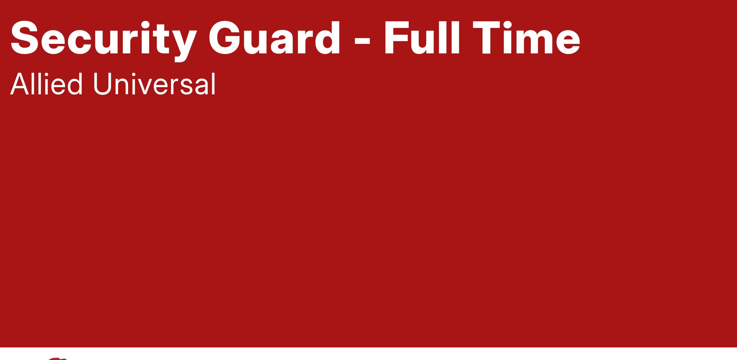 Allied Universalยฎ, North Americaโs leading security and facility services company, offers rewarding careers that provide you a sense of purpose. While working in a dynamic, welcoming, and collaborative workplace, you will be part of a team that contributes to a culture that positively impacts the communities and customers we serve. We offer comprehensive benefits for most full-time positions, including medical, dental, and vision coverage, life insurance, a retirement plan, employee assistance programs, company discounts, perks, and more.