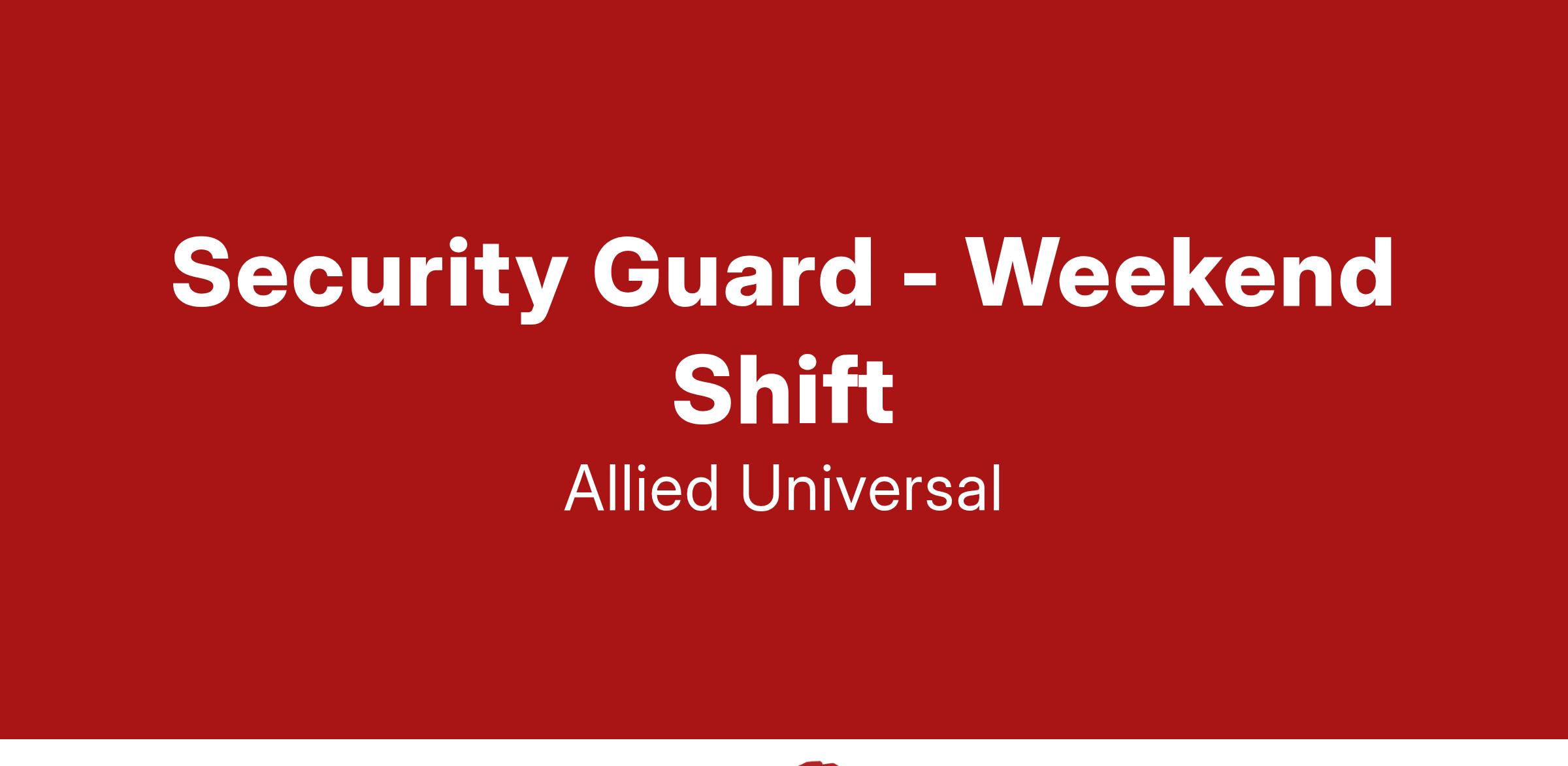Allied Universalยฎ, North Americaโs leading security and facility services company, offers rewarding careers that provide you a sense of purpose. While working in a dynamic, welcoming, and collaborative workplace, you will be part of a team that contributes to a culture that positively impacts the communities and customers we serve. We offer comprehensive benefits for most full-time positions, including medical, dental, and vision coverage, life insurance, a retirement plan, employee assistance programs, company discounts, perks, and more.