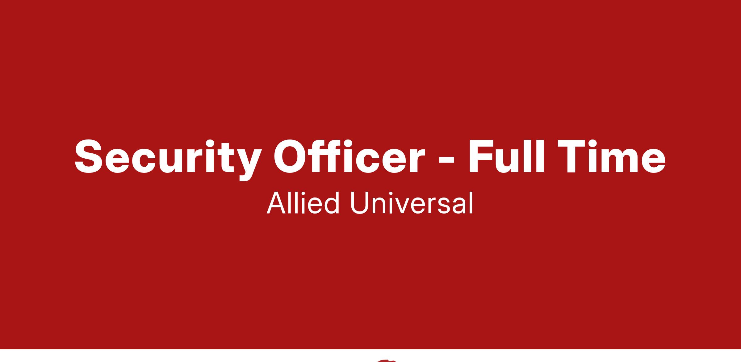 Allied Universalยฎ, North Americaโs leading security and facility services company, provides rewarding careers that give you a sense of purpose. While working in a dynamic, diverse and inclusive workplace, you will be part of a team that fuels a culture that will reflect in our communities and customers we serve. We offer medical, dental and vision coverage, life insurance, retirement plan, employee assistance programs, company discounts, perks and more for most full-time positions!