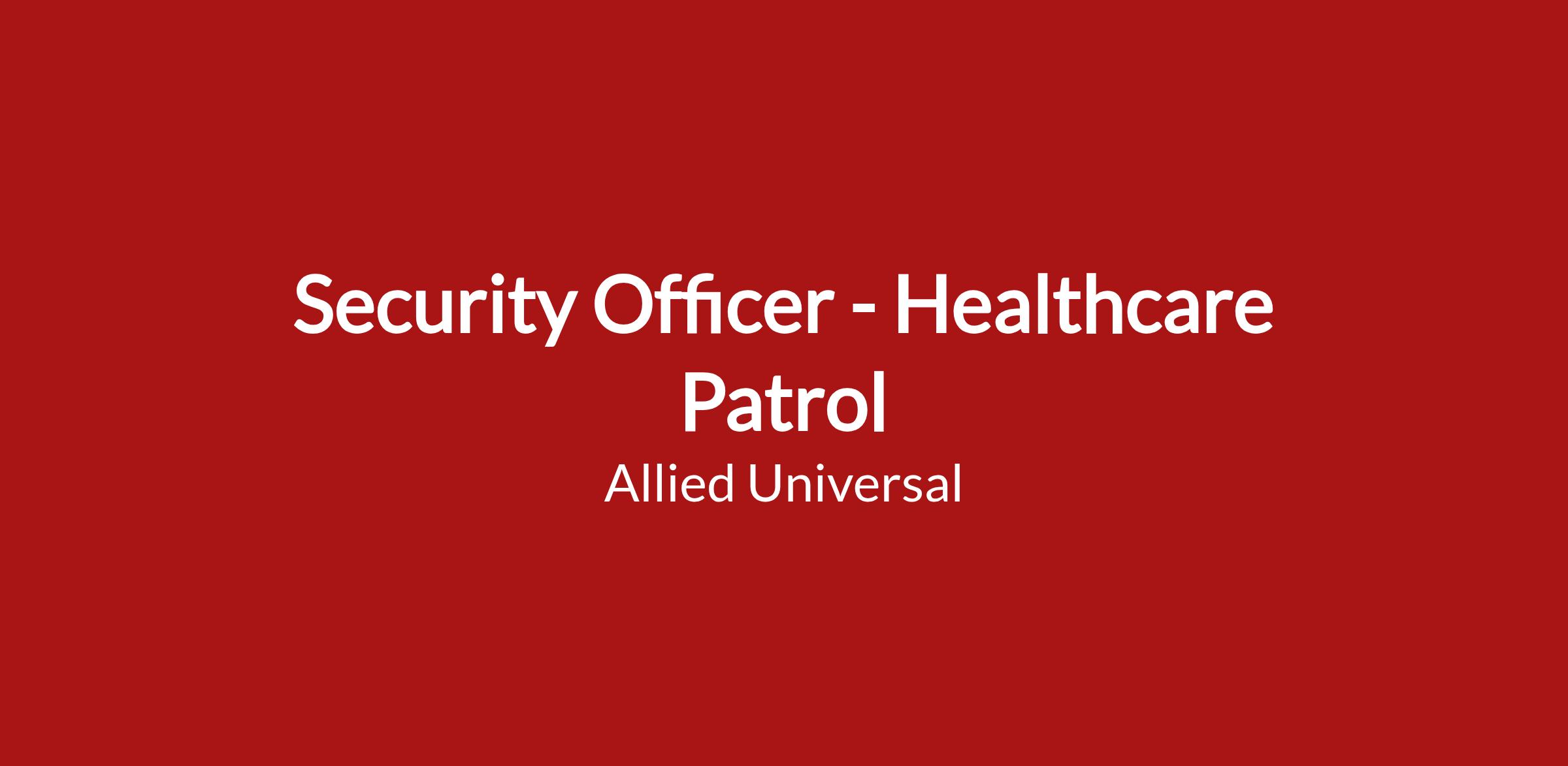 As a Security Officer - Healthcare Patrol in Aiken, SC, you will serve and safeguard clients in a range of industries such as Healthcare, and more. Join a leading team where flexibility meets opportunity. As a Part-Time Security Officer, you can build a schedule that works for you and explore new roles using our Claim a Shift platform. Learn more: aus.com/earnmore. Join Allied Universal at a fast-paced healthcare location where you will monitor and patrol assigned areas, helping to maintain a welcoming environment for patients, visitors, and staff. You will complete routine patrols, stay highly visible to help reduce security-related incidents, respond to calls for assistance, and document key observations. Bring strong communication and customer service skills while supporting a caring, integrity-driven team that values agility, reliability, and innovation.