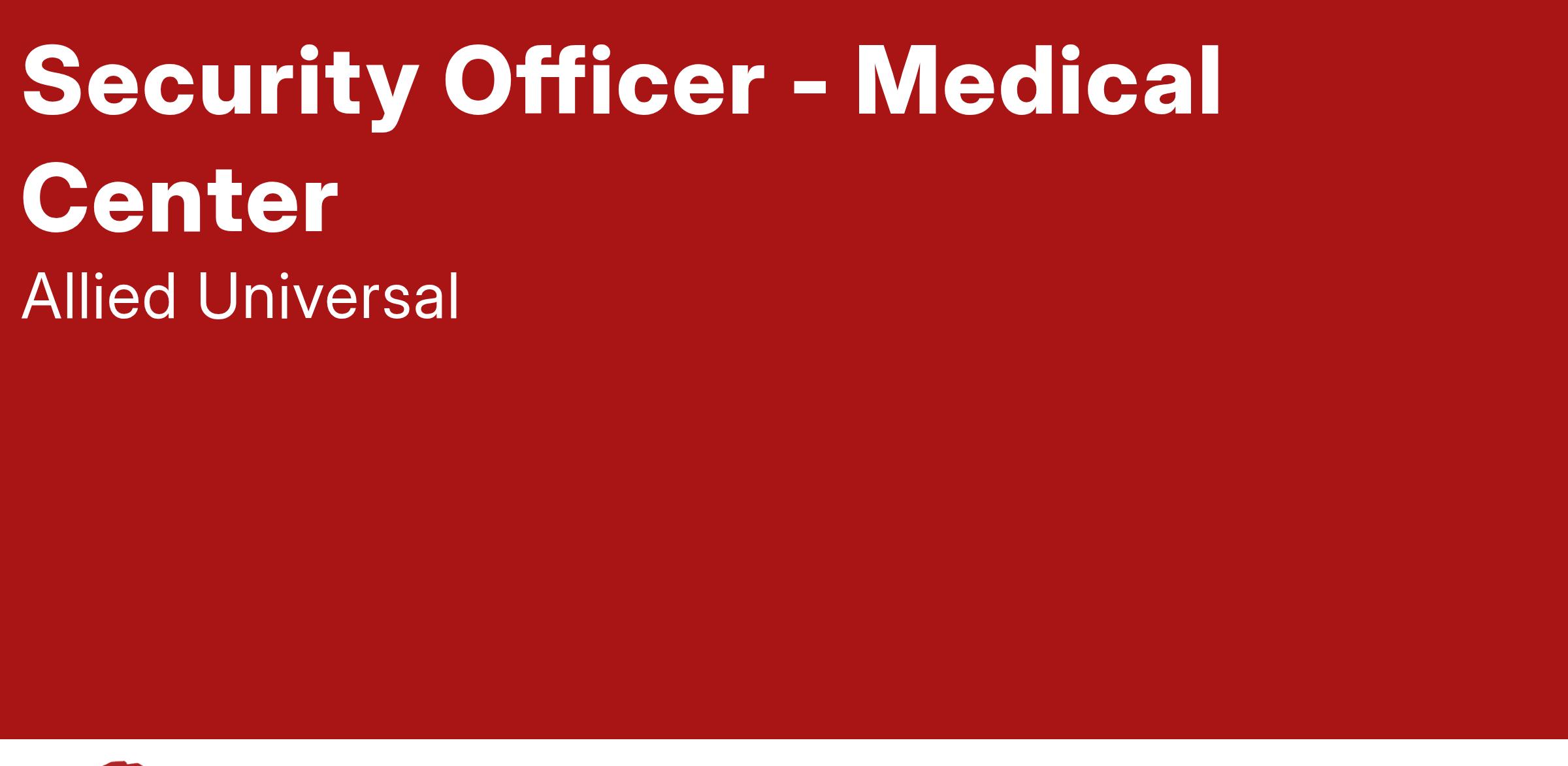 Allied Universalยฎ is hiring a Security Professional - Unarmed. The Security Professional will conduct unarmed foot and/or vehicle patrol (interior and/or exterior) in a hospital environment. Additional duties include control access and egress; monitor CCTV and alarm systems; compose reports; deter criminal activity and misconduct. Due to the safety sensitive nature of this role, qualified candidates must be able to submit to drug screening to the extent permissible by law. This assignment is in a healthcare facility. As such, a tuberculosis (TB) test and certain vaccinations may be required.