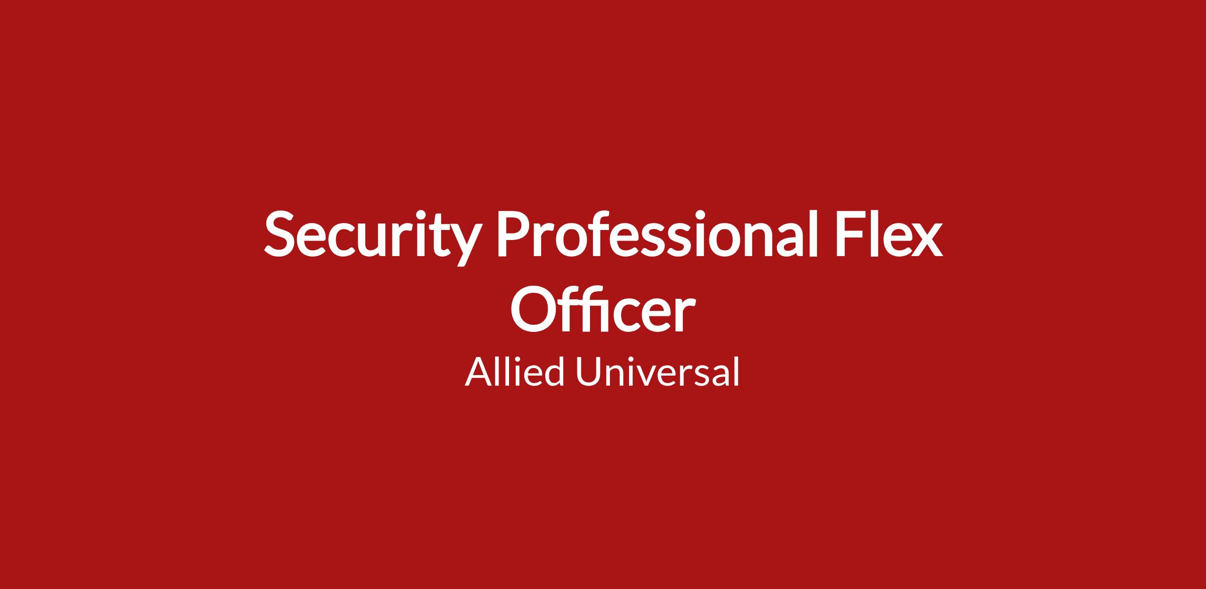 Allied Universalยฎ is hiring a Security Professional Flex Officer. The Security Professional Flex Officer will serve and safeguard clients in a range of industries such as Healthcare, Education, Finance and more. Join a leading team where flexibility meets opportunity. As a Security Professional Flex Officer, youโll use our exclusive shift-pickup platform to view and claim open shifts based on your availability - giving you the freedom to build a schedule that works for you, while gaining valuable site experience across various industries. Whether you're looking to supplement your income or take the first step toward a phenomenal career, this position offers unmatched access to hands-on experience and growth opportunities. The Security Professional Flex Officer may be called upon to work irregular shifts at times with little to no advance notice.