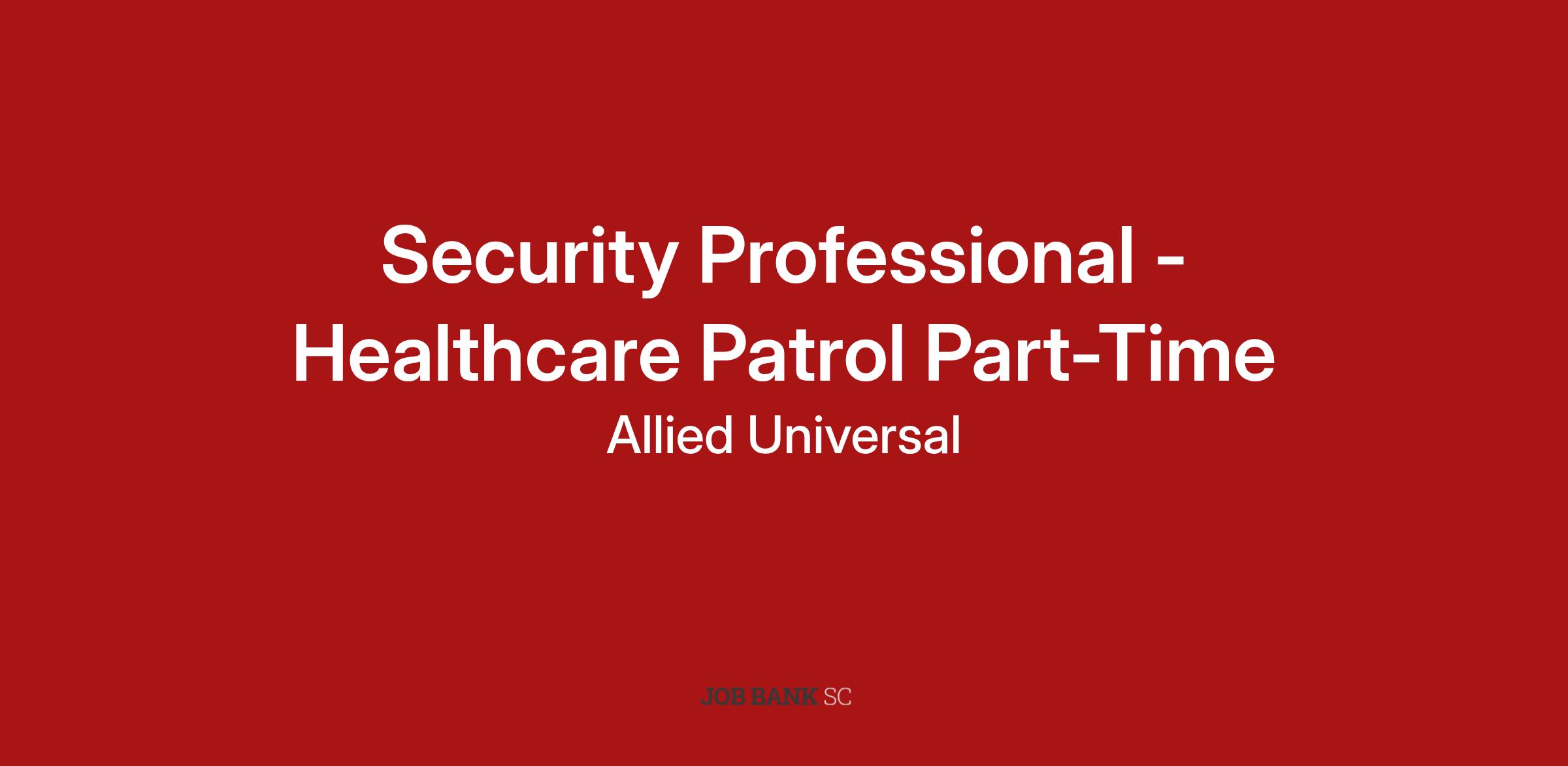 As a Security Professional - Healthcare Patrol Part-Time in Columbia, SC, you will serve and safeguard clients in a range of industries such as Healthcare and more .