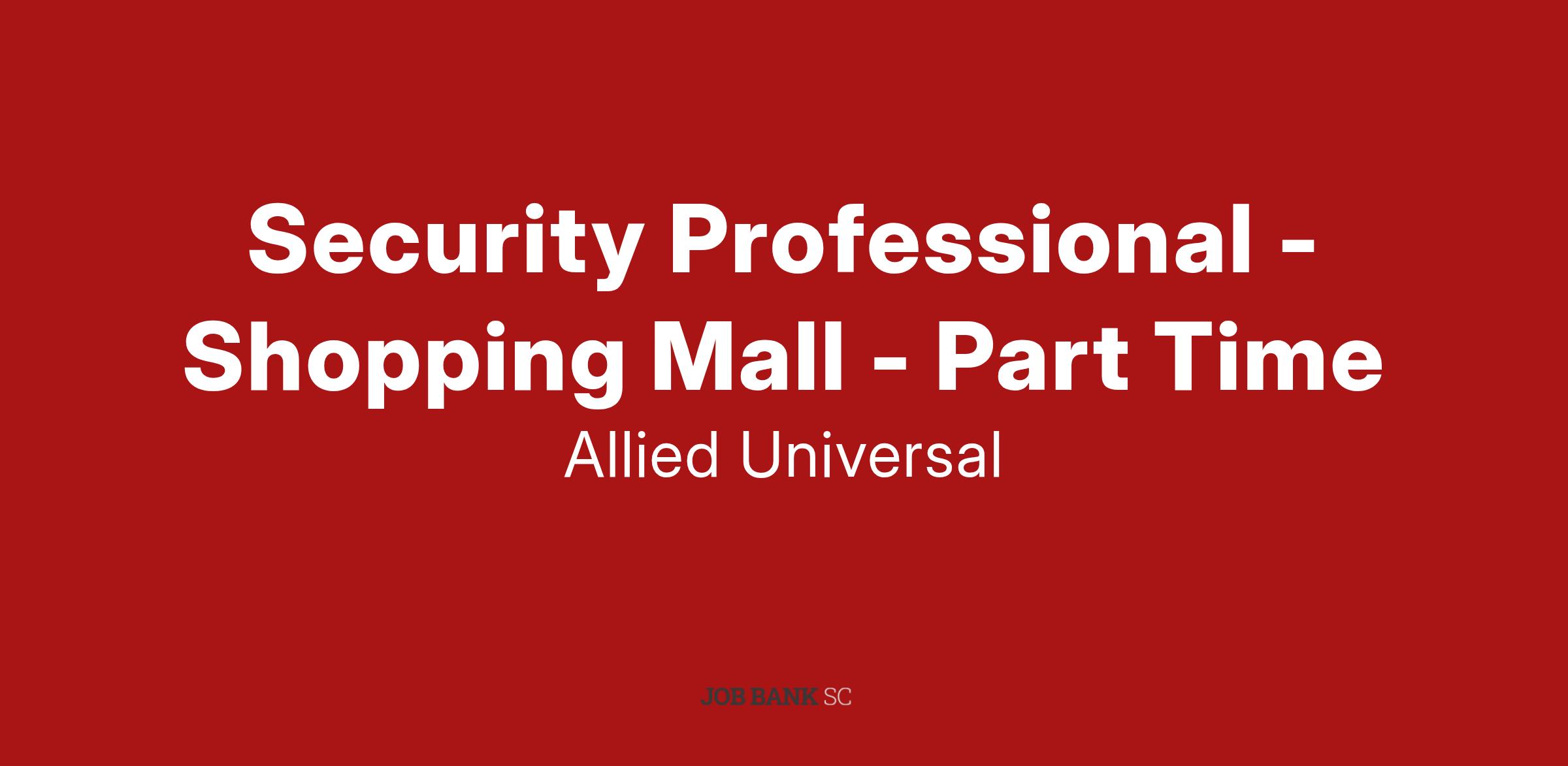 As a Security Professional - Shopping Mall - Part Time in Myrtle Beach, SC, you will serve and safeguard clients in a range of industries such as Retail/Malls and more .