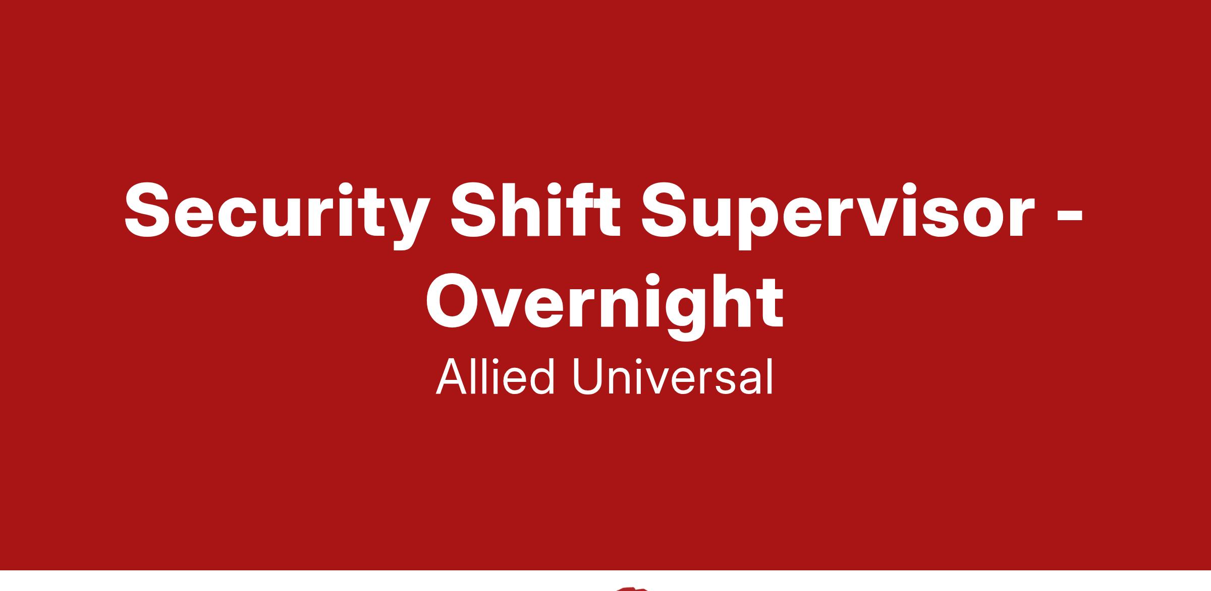 Allied Universal Services is currently searching for a Professional Security Shift Supervisor.