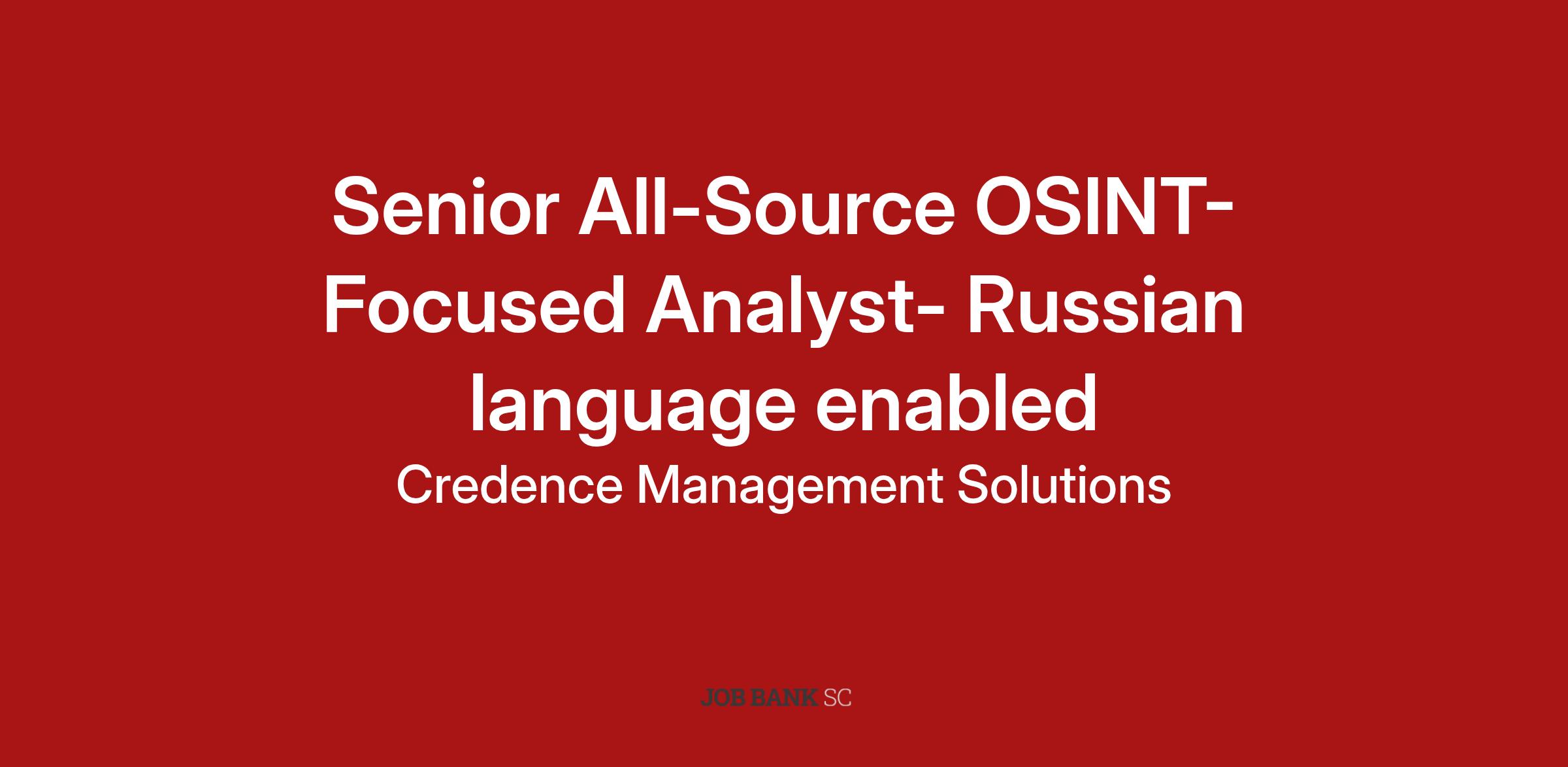Credence has an upcoming need for a Senior All-Source OSINT-Focused Analyst- Language enabled to support the U.S. Air Forces Central (AFCENT) Intelligence, Surveillance, and Reconnaissance (ISR) Technical Support program at Shaw AFB, SC.Β Language Enable β Russian- independently tested to ensure ability to listen, read, write and translate in accordance with either Defense Proficiency Language Test (DPLT) or Interagency Language Roundtable (ILR) level 2/2