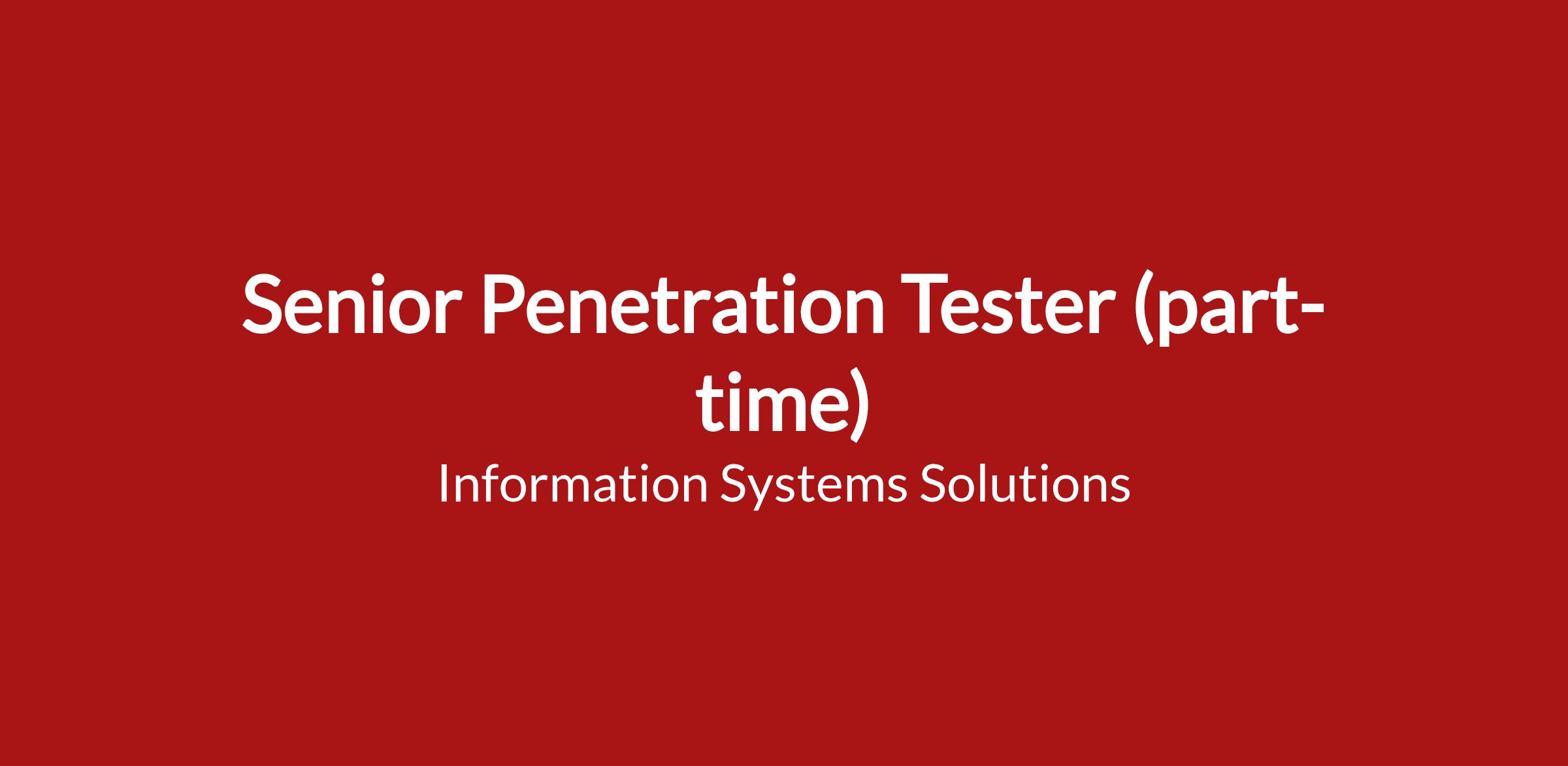 Information Systems Solutions, Inc. (ISS) is seeking an experienced Senior Penetration Tester to join our Security Control Assessment (SCA) team in support of the National Science Foundation (NSF) Office of Polar Programs (OPP) and the United States Antarctic Program.