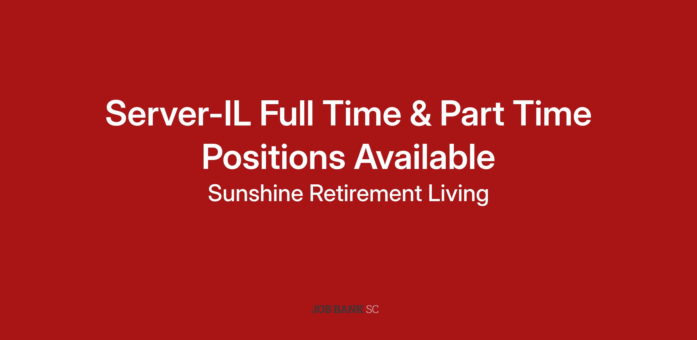 Job Title:ย ย ย ย ย ย ย ย ย ย ย ย Servers Independant Living Community: Full Time & Part Time Positions Availableย ย ย ย ย ย ย ย ย