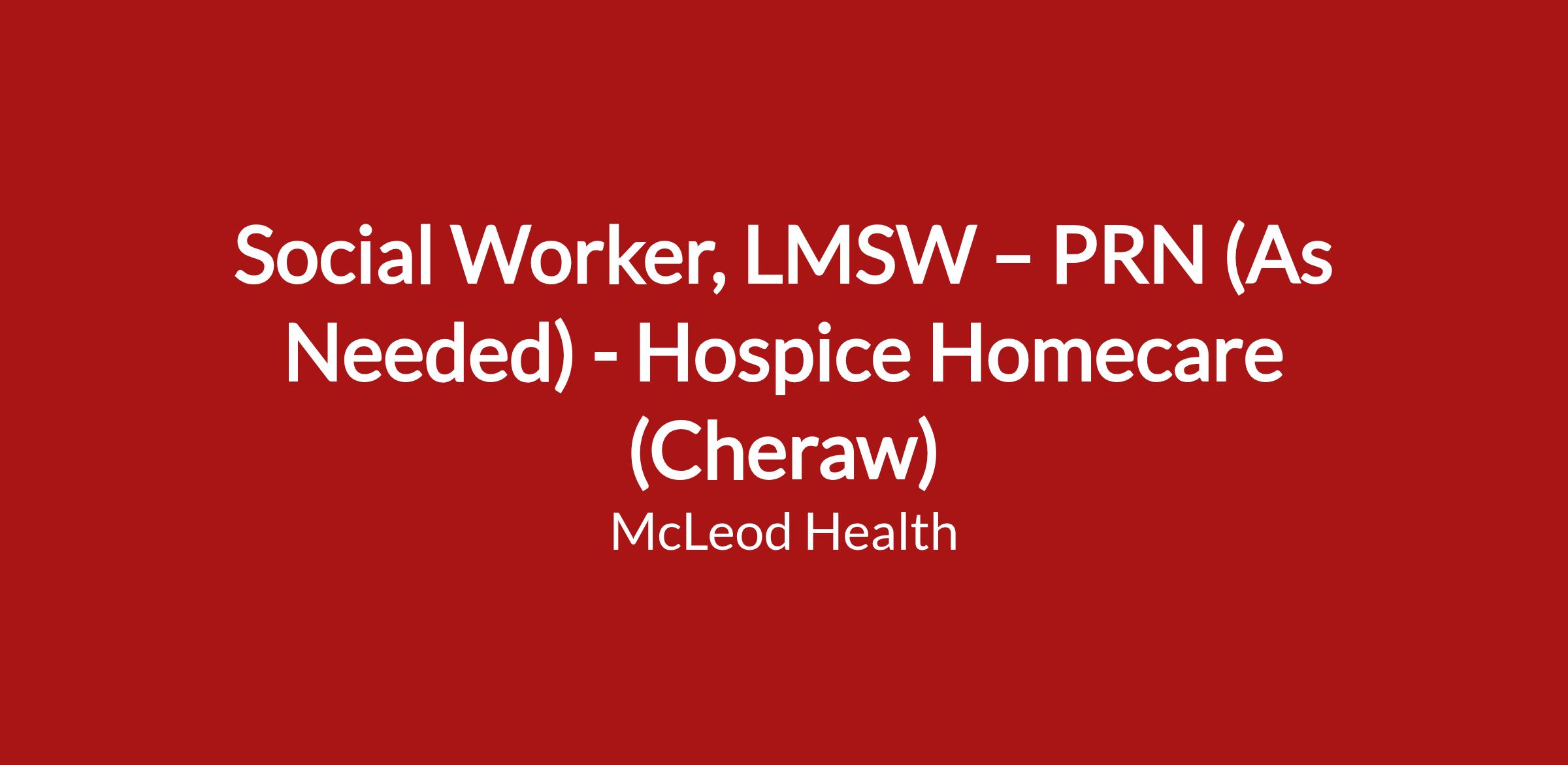 Social Worker, LMSW β PRN (As Needed) - Hospice Homecare (Cheraw)Β