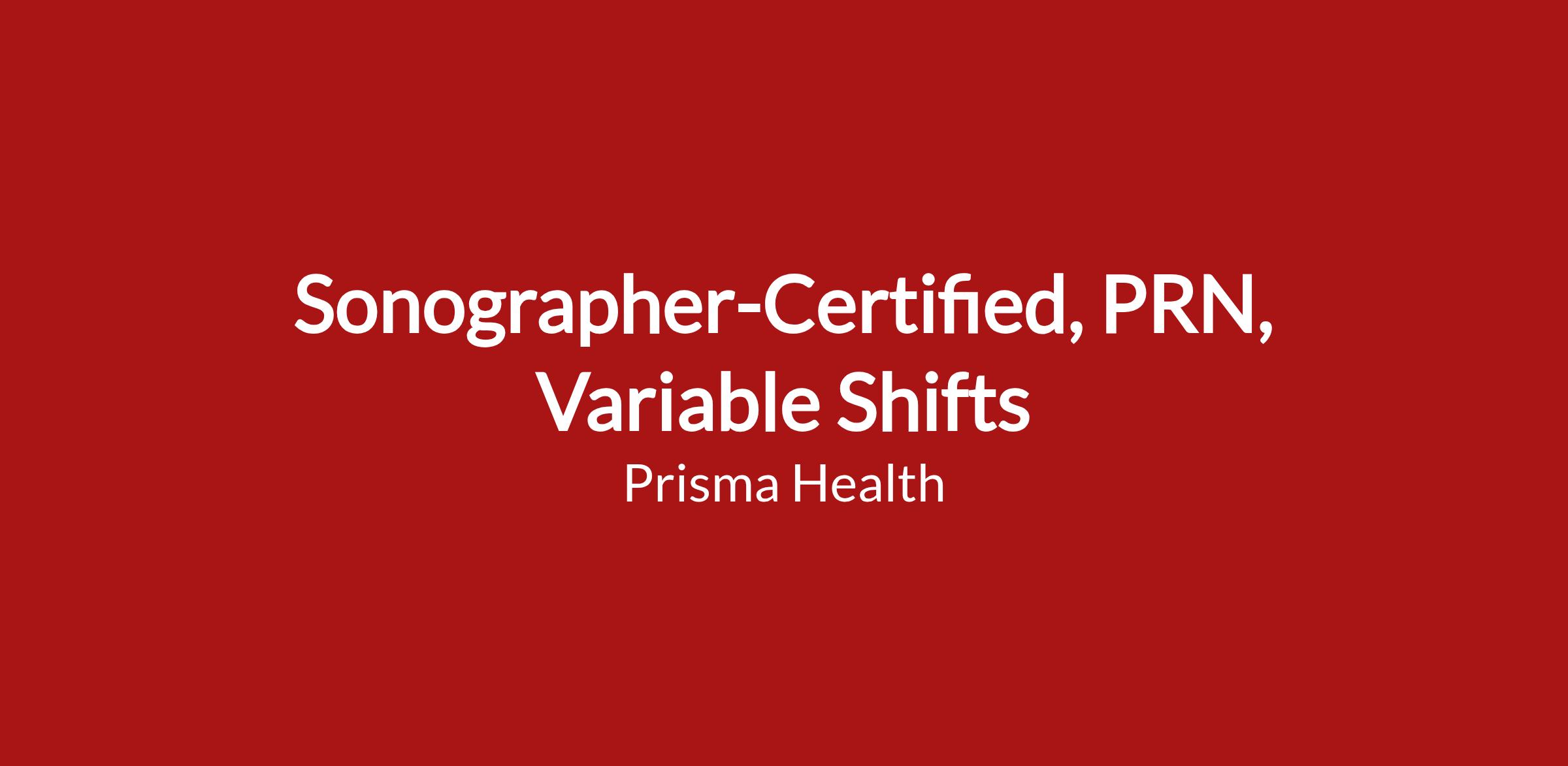 10647122 UltrasoundShare your talent with us! Our vision is simple: to transform healthcare for the benefits of the communities we serve. The transformation of healthcare requires talented individuals in every role here at Prisma Health.