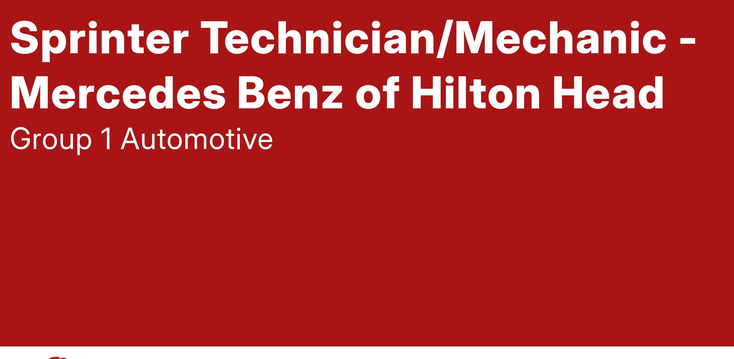 We are MERCEDES-BENZ OF HILTON HEADis part of the fast-growing Group 1 Automotive, a leader in automotive retail and service. We are growing and need to add Sprinter Technician/Mechanic,to our team! Are you an experienced Sprinter Technician ready to advance your career? Are you ready to work in a Technician focused environment with all the tools and support to maximize your earnings potential? If you answered yes than we want to meet you! You have several ways to apply so apply now!