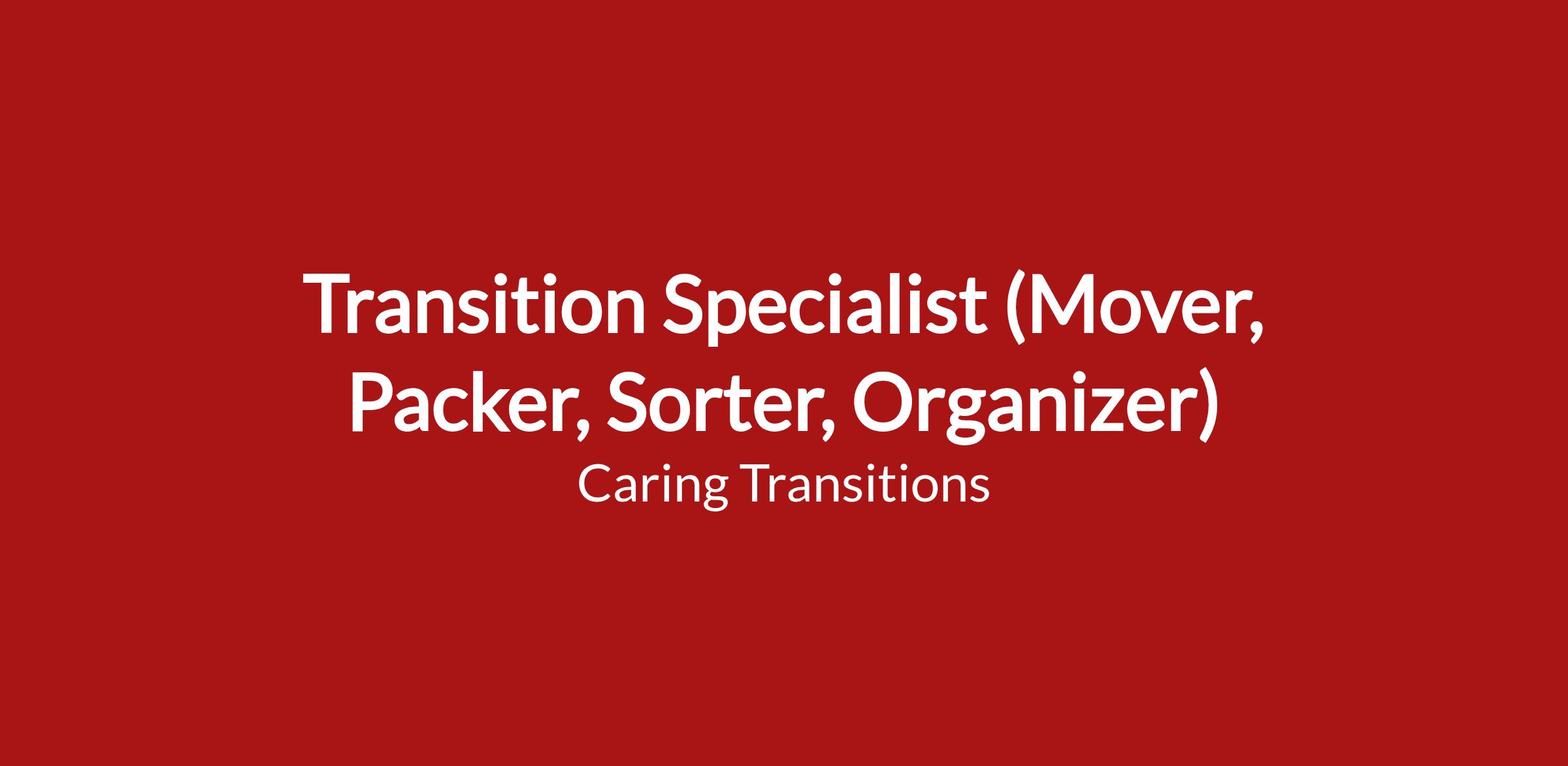 Transition Specialist (Mover, Packer, Sorter, Organizer)