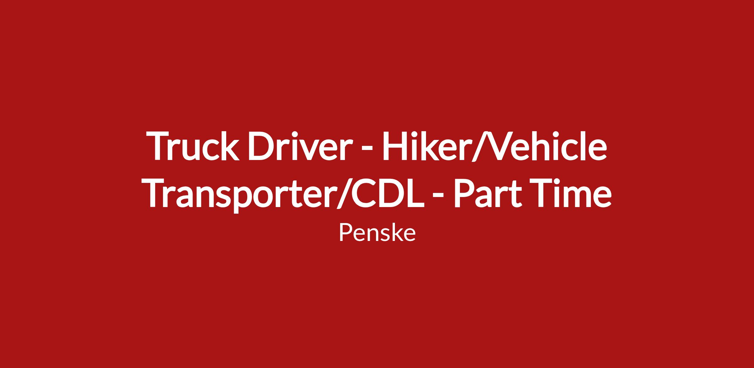 Penske Truck Leasing seeks highly motivated and qualified applicants to fill the unique position of Hiker (Vehicle Transporter/Truck Driver). This position is responsible for vehicle delivery and returning vehicles to Penske locations and Penske customers. Primarily, this position moves our box trucks up to 26ā and for CDL Class A will include tractors and trailer movement. Position may also provide assistance to the service department to deliver parts and equipment.