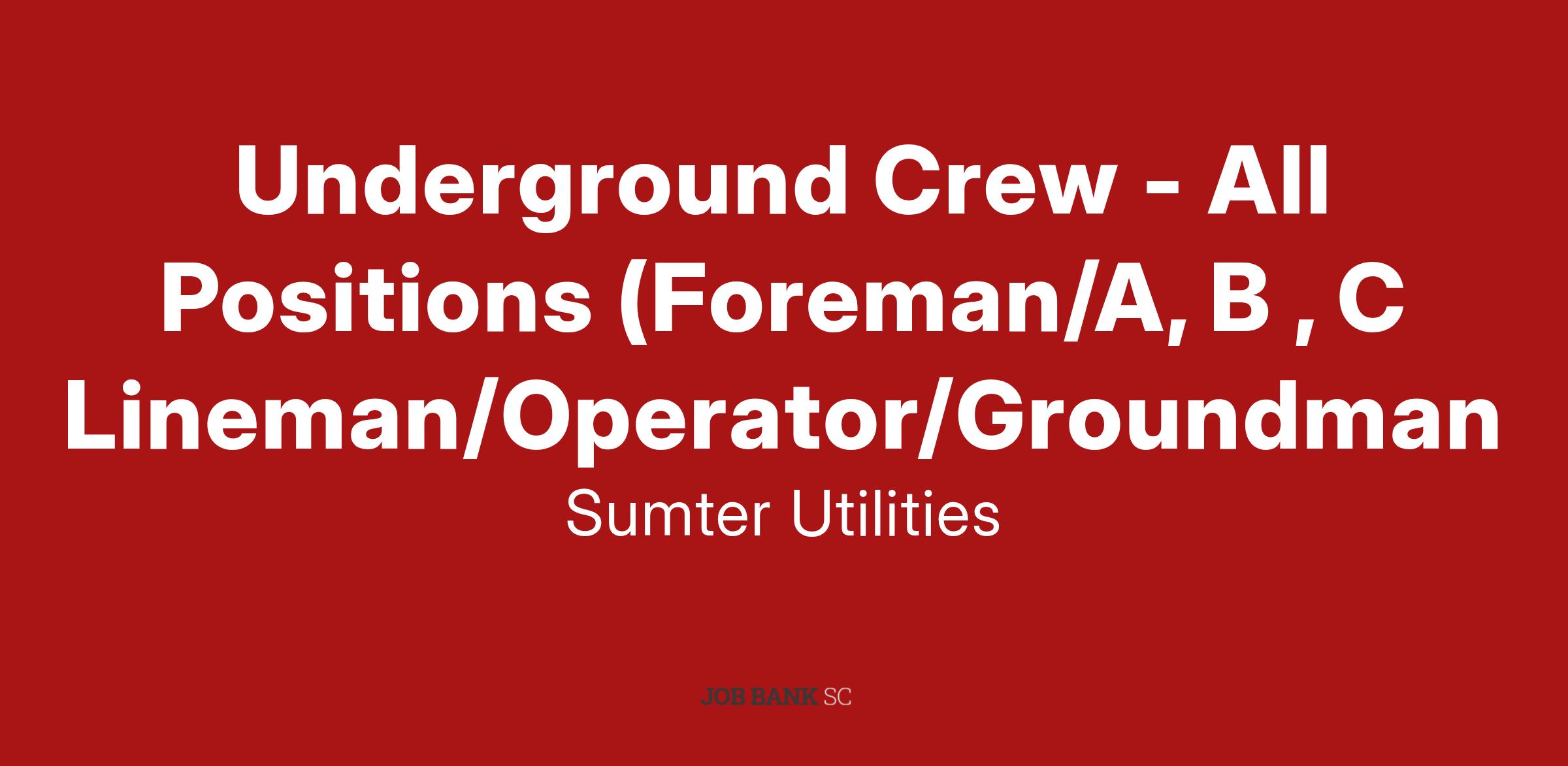 Sumter Utilities, Inc. (a Quanta Services company)Â seeks an Underground Crews.