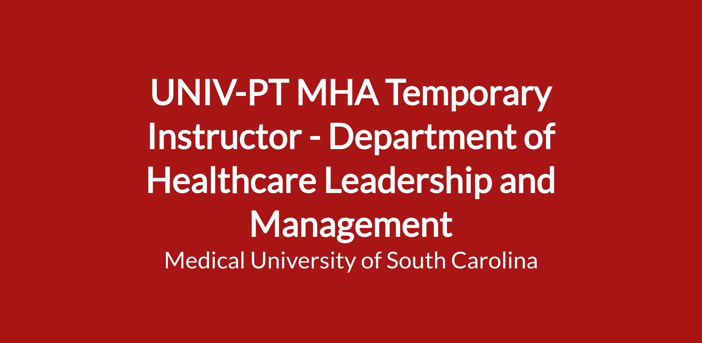 MUSC is a nationally-recognized academic health sciences center committed to excellence in teaching, research, and patient-care innovation. The MHA program prepares graduates for careers as healthcare administrators, executives, policy leaders, and other advanced roles in the healthcare industry.ย