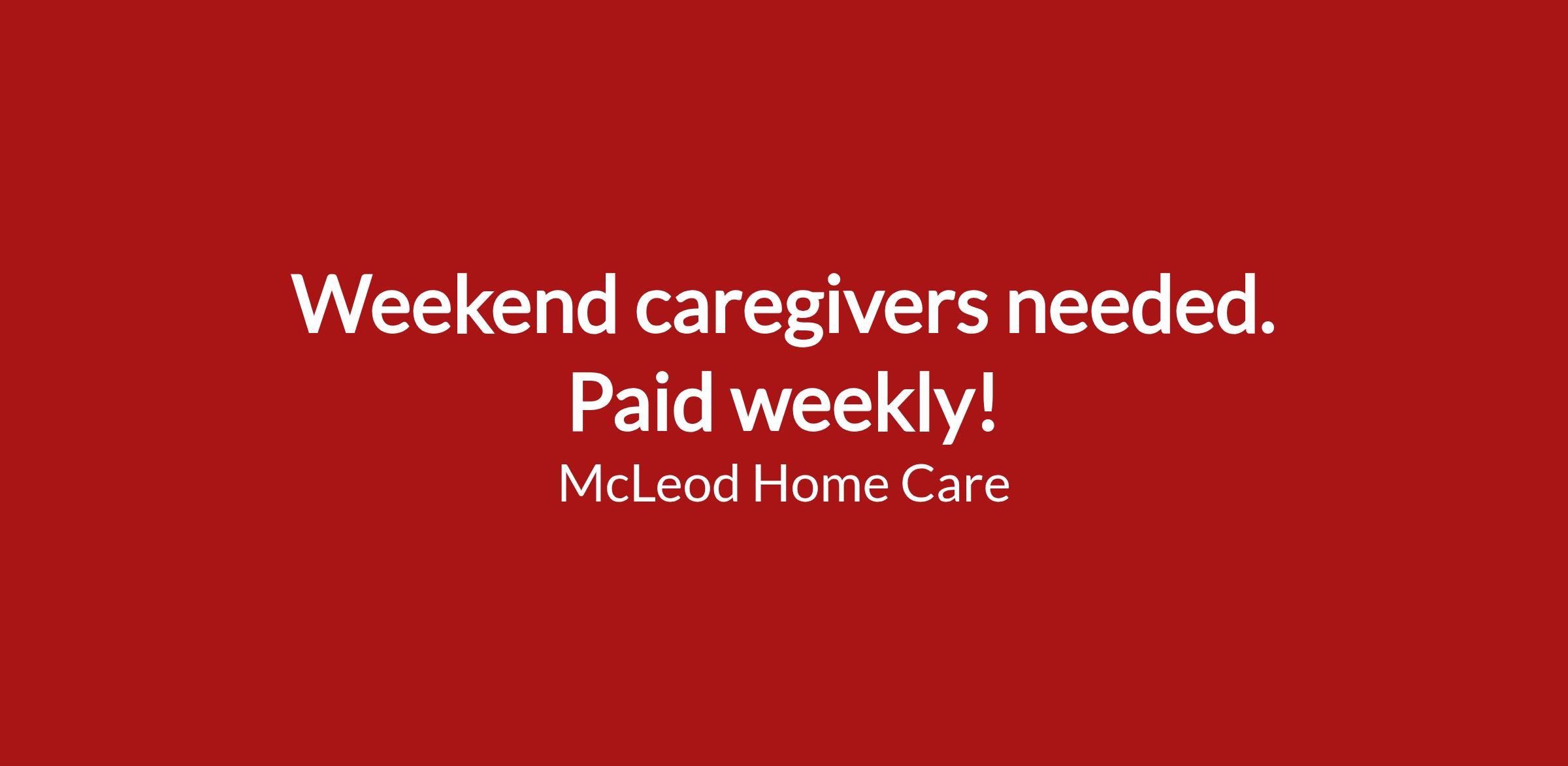 McLeod Home Care is a non-medical home care agency looking for experienced, caring, and compassionate Care Professionals! We have great appreciation for those who put their heart and soul into this work. Apply now to see why 60% of our Care Professionals are referred by our current staff of Care Professionals!